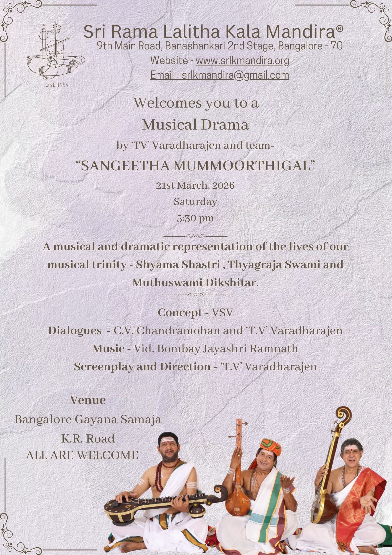 We welcome you to join us for a grand musical drama on the lives of our Musical Trinity –